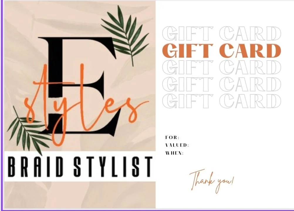 EStyles Hair Brush $15.00 EStyles Hair Oil $25.00 EStyles Braid Mist $25.00 Sold out Gift card from $25.00